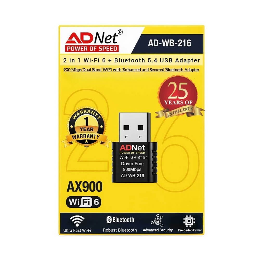 ADNET 2-in-1 WiFi 6 Bluetooth 5.4 USB Dongle 5GHz Adapter
