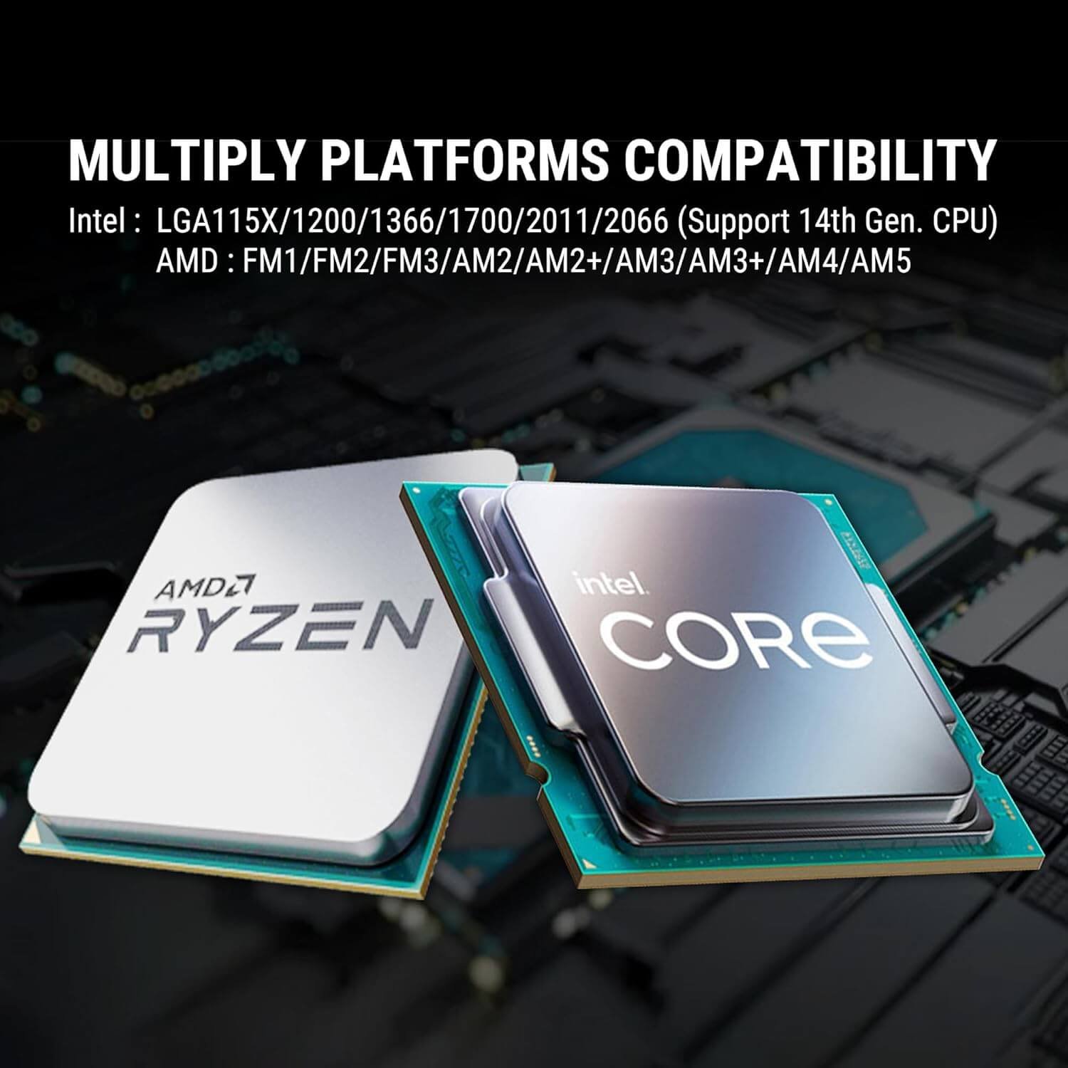 • CPU Socket Compatibility – Intel – LGA115X/1200/1700/1366/2011/2066 I AMD – FM1/FM2/AM2//AM2+/AM3/AM3+/AM4/AM5