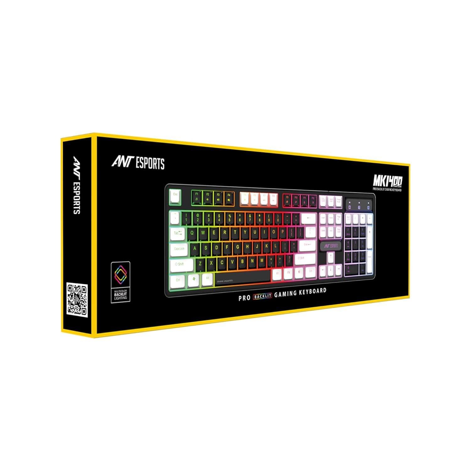 • · Ant Esports MK1400 Pro Backlit Gaming Keyboard Comes with Stylish 104 keys. Its durable quality & Elegant black & white key cap design enhances your gaming & work experience.