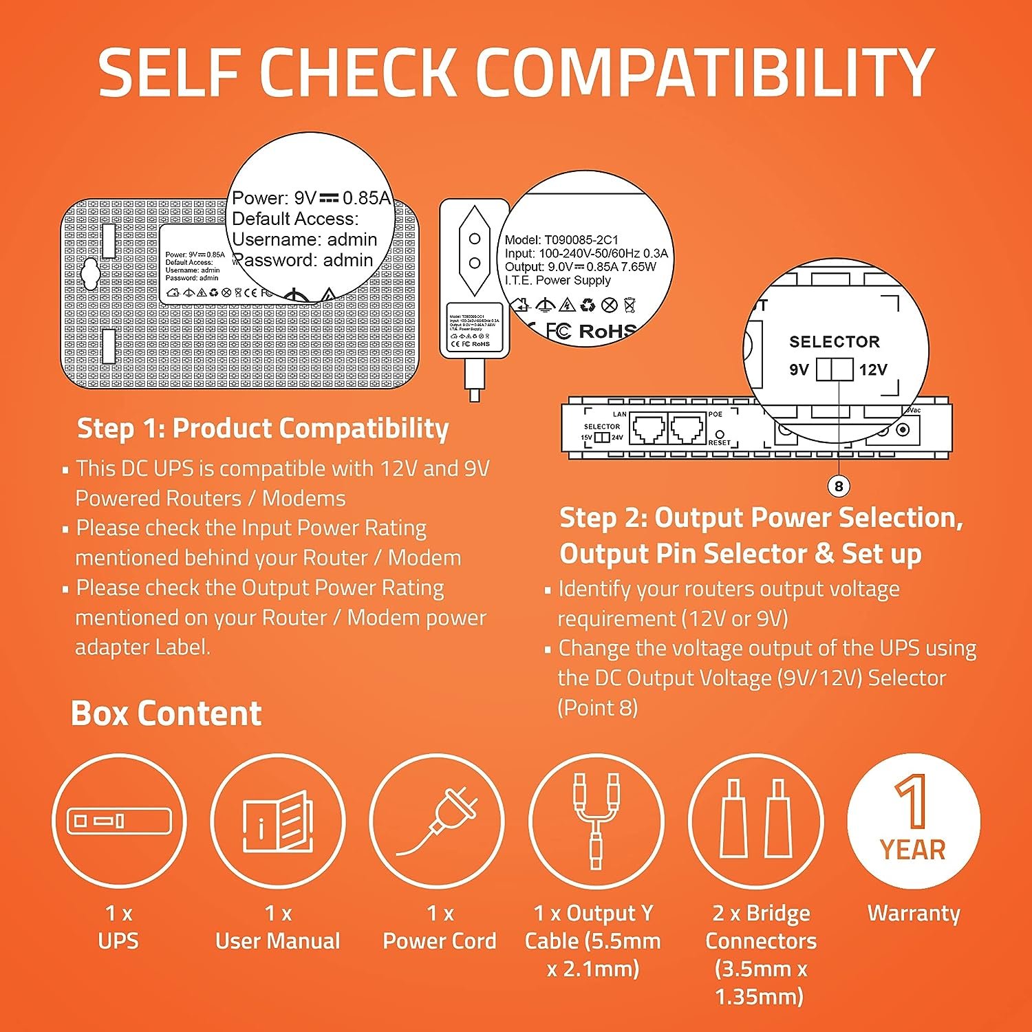 • For Any further assistance, please read the user manual or get in touch with us at inquiry@artis.in Or 1800 123 8195. NOTE: Please check the compatibility of your devices before purchasing. This UPS supports 9V and 12V output, it supports 1A/1.5A/2A Output. It supports 15V and 24V POE output and upto 1.7A USB charging Output.