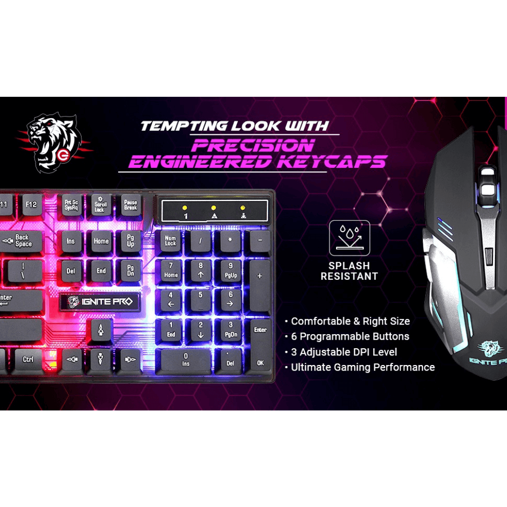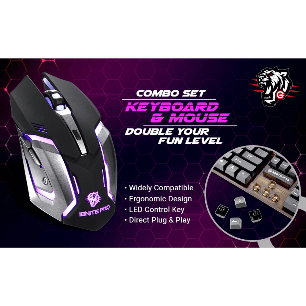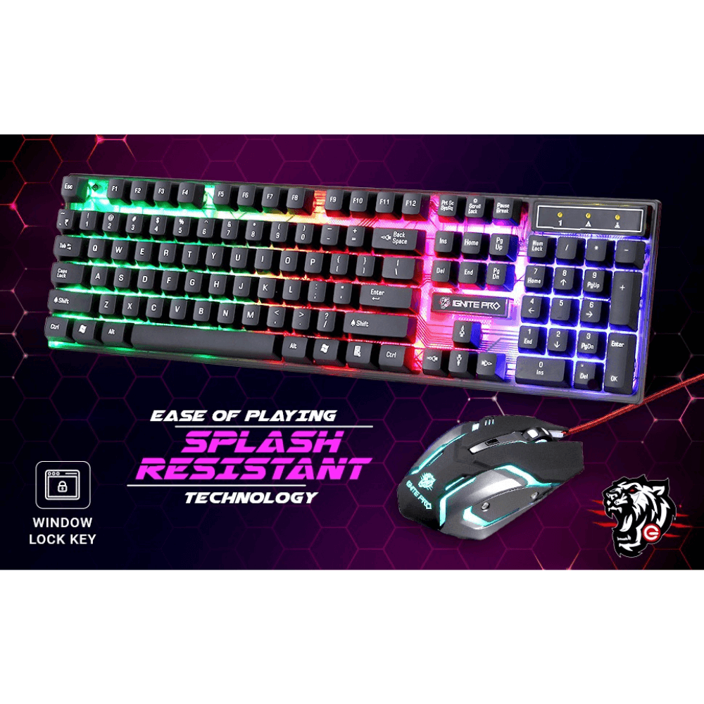 Enter Ignite Pro Gaming Mouse and Keyboard Combo – 6 Button Mouse, Rainbow Backlighting