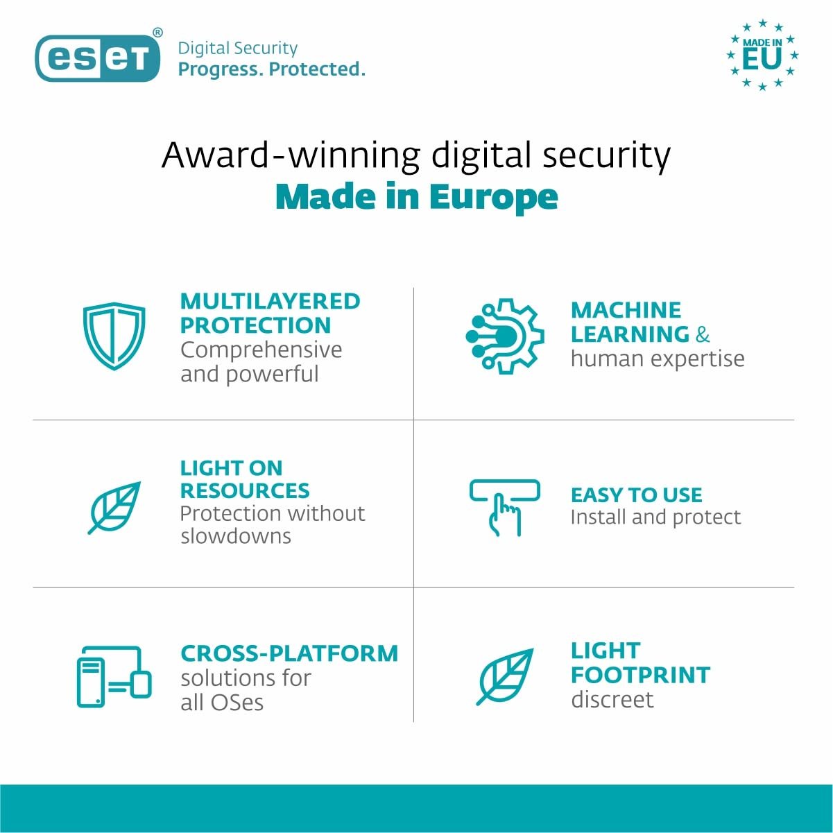 • ESET uses advanced heuristic analysis to identify new and unknown threats based on their behaviour, even if they don’t have a known signature.