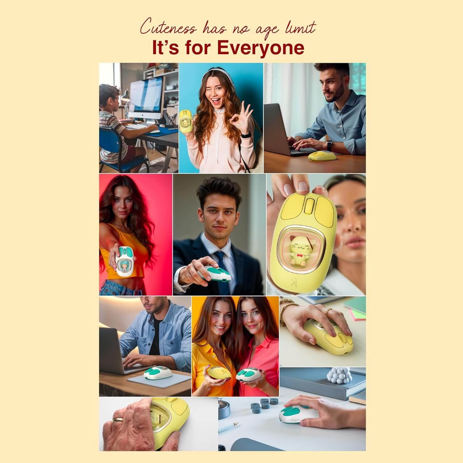 • ✌🏻2 Cute Designs to Match your Vibe: Why settle for ordinary when you can have extraordinary? Choose between Sunshine Yellow and Happy Yellow + Teal, each featuring a charming character inside a glass panel—because your mouse should be as cute as you are!