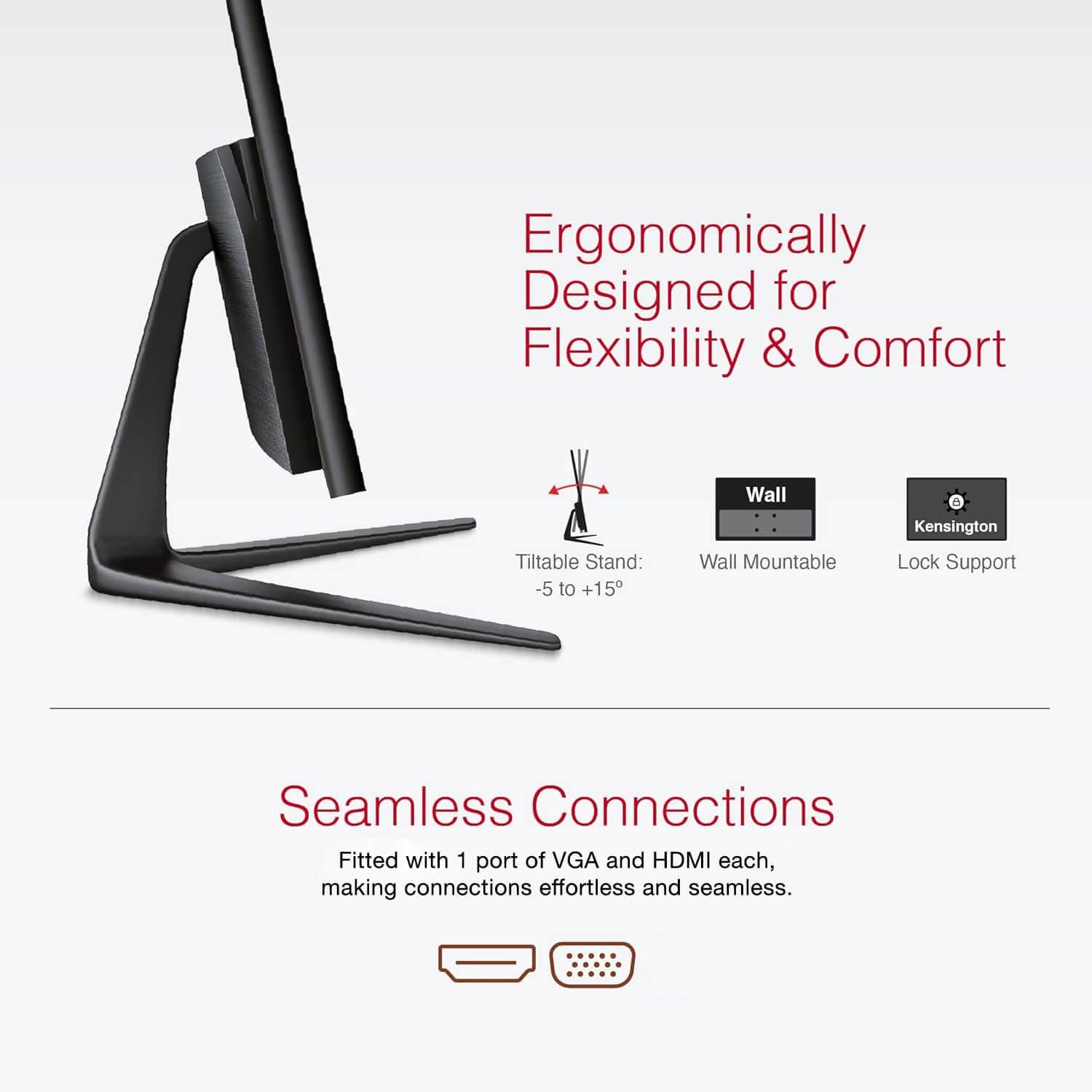 • [Quality Matters. A+ Grade.]: Hand-picked and crafted with premium components and the finest materials, these LED Monitors deliver a rich viewing experience along with long-lasting durability. Each element is duly taken care including the sturdy stand, which is finished with high-quality metal.