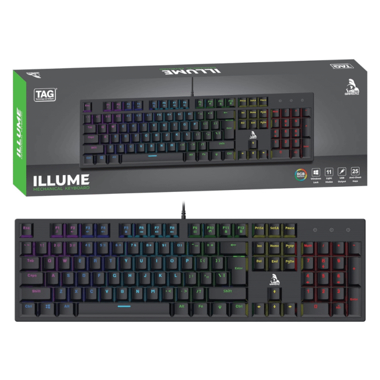 • Keyboard comes with a fashion streamline designed with 104 key layout that is perfectly spread within the reach of your fingers.