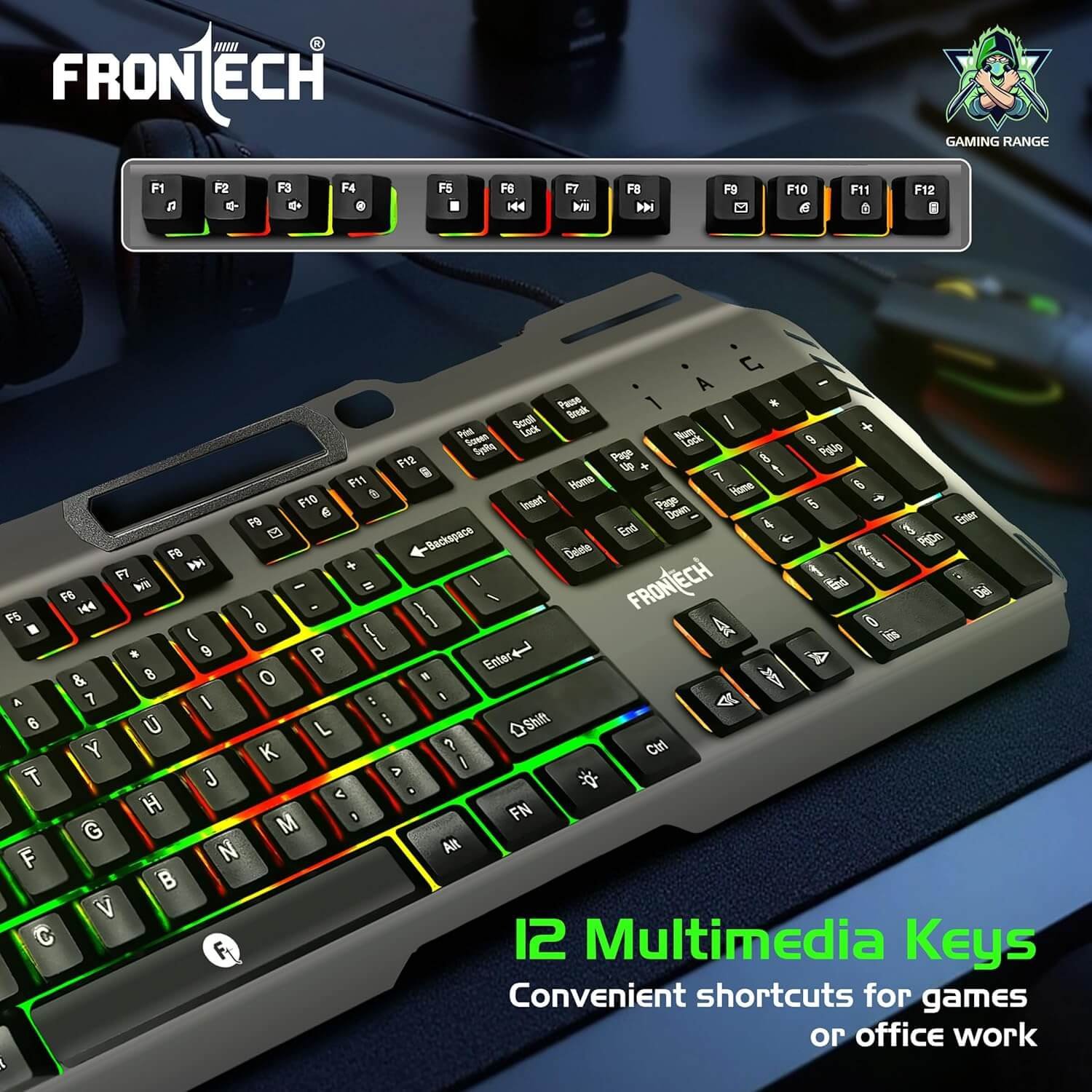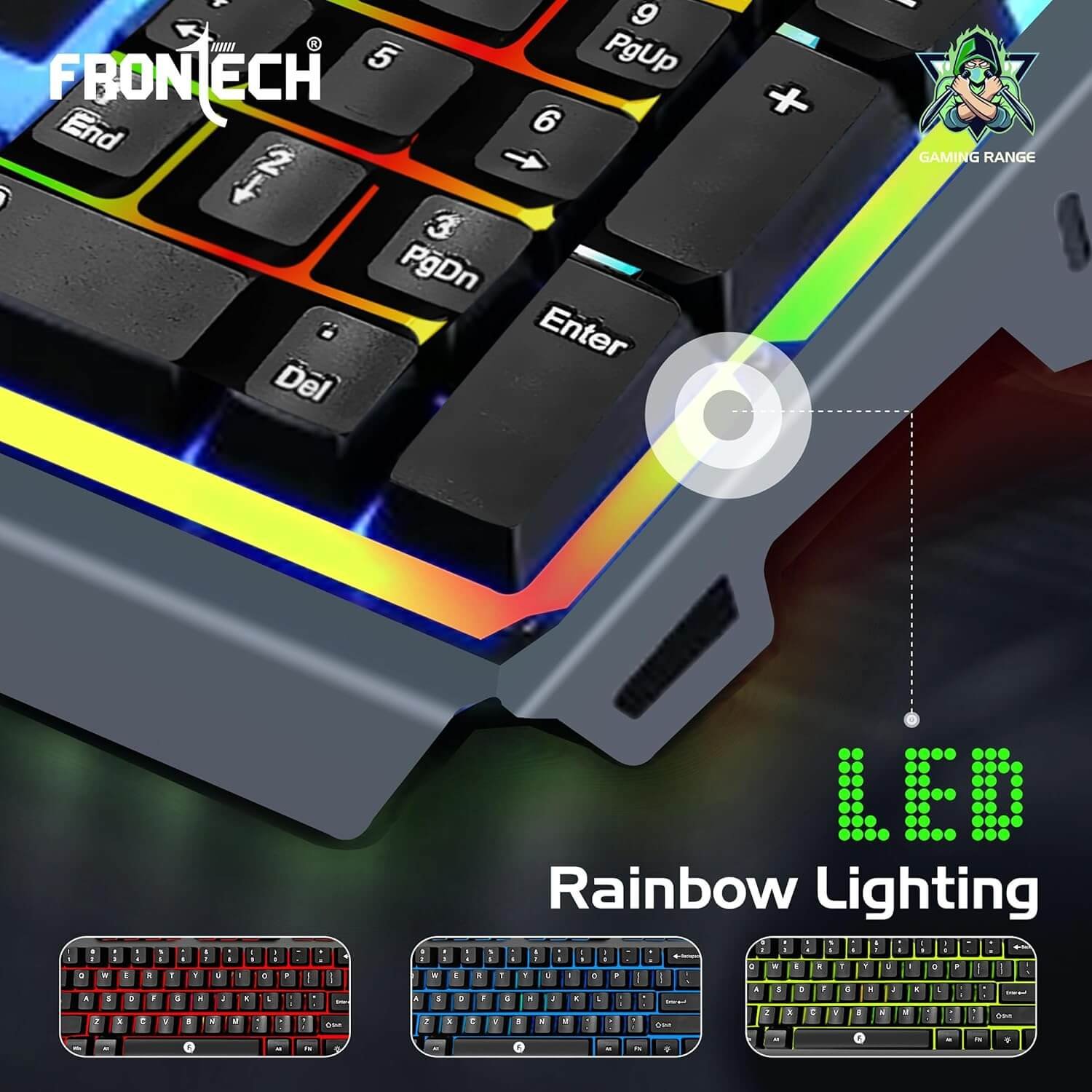 FRONTECH KB-0049 Wired Gaming Keyboard with Rainbow Backlight (Grey & Black)