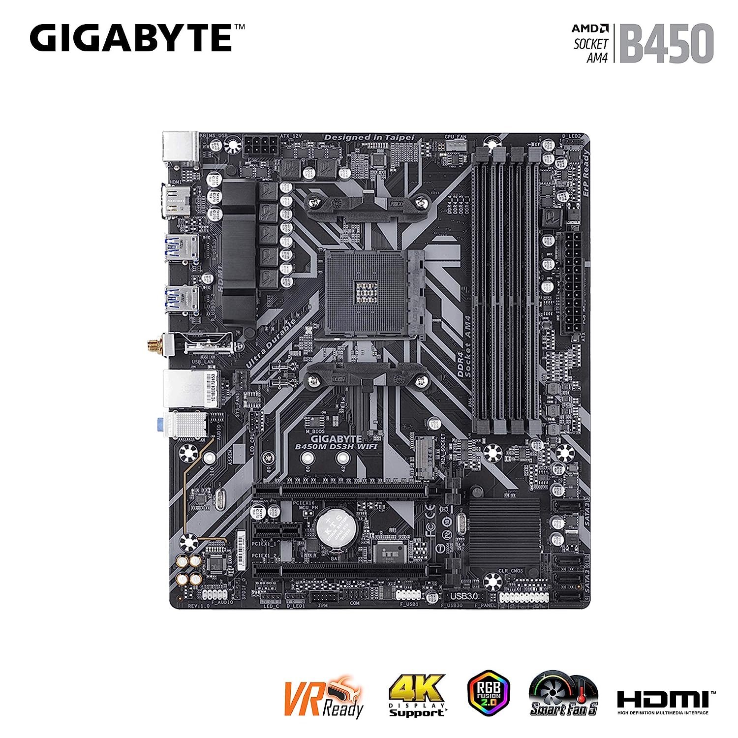 Gigabyte B450M DS3H WiFi MicroATX Motherboard – Socket AM4, DDR4