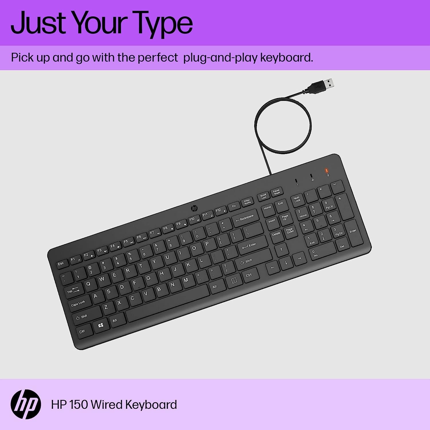 HP 150 Wired Keyboard – Quick, Comfy, Ergonomic Design