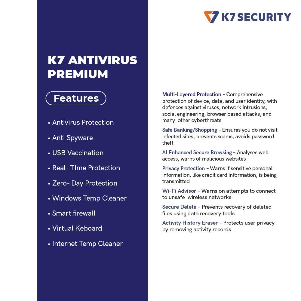 K7 Antivirus Premium – 1 User, 1 Year (Latest Version) Email Delivery