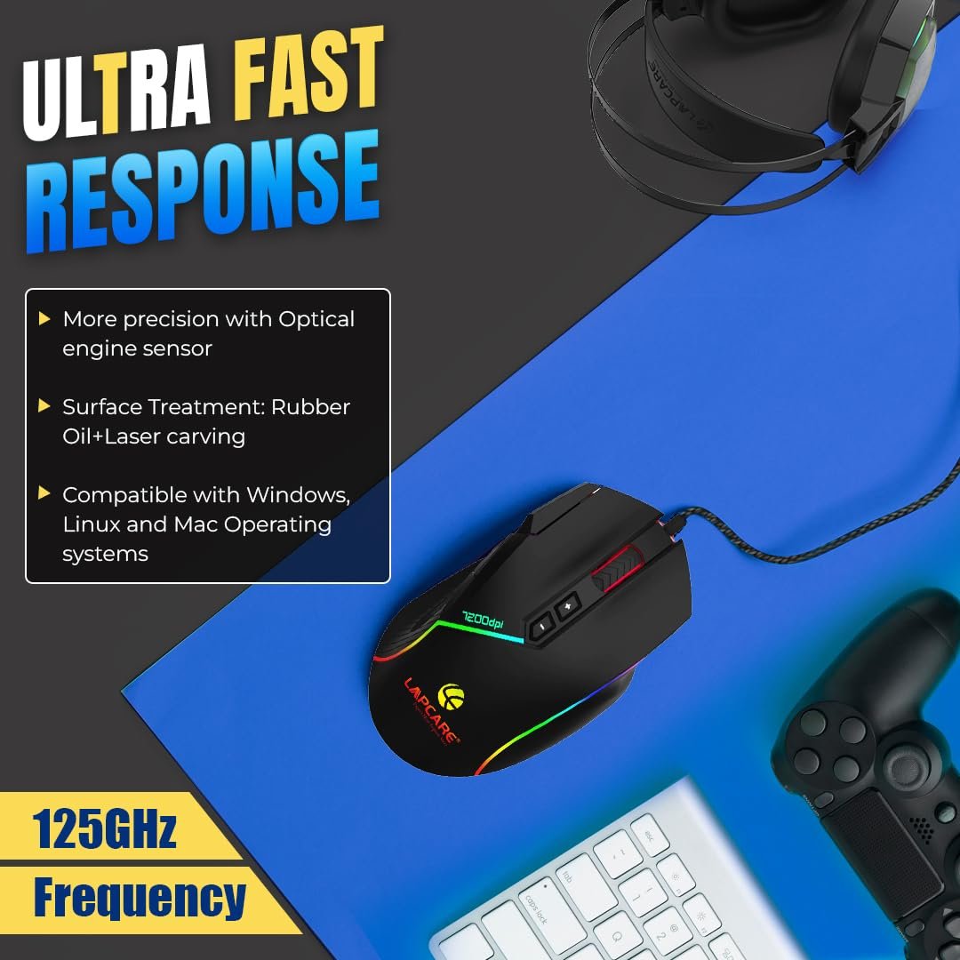 • High-Precision 7200 DPI Optical Gaming Sensor: Experience ultra-smooth tracking and accurate cursor control with 6 customizable DPI levels up to 7200 DPI, perfect for FPS, MOBA, RPG, and competitive gaming.