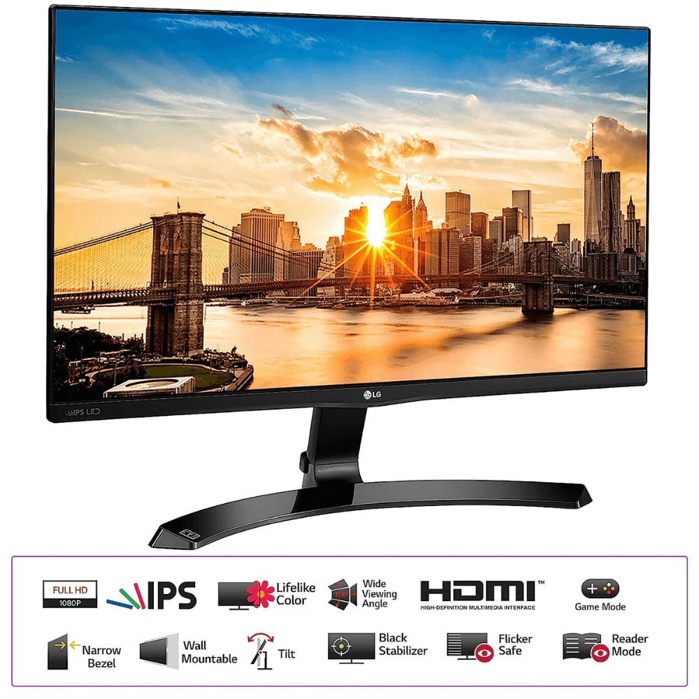 LG 22-Inch IPS Monitor – Full HD, VGA, HDMI, DVI, Audio Out Ports (22MP68VQ)