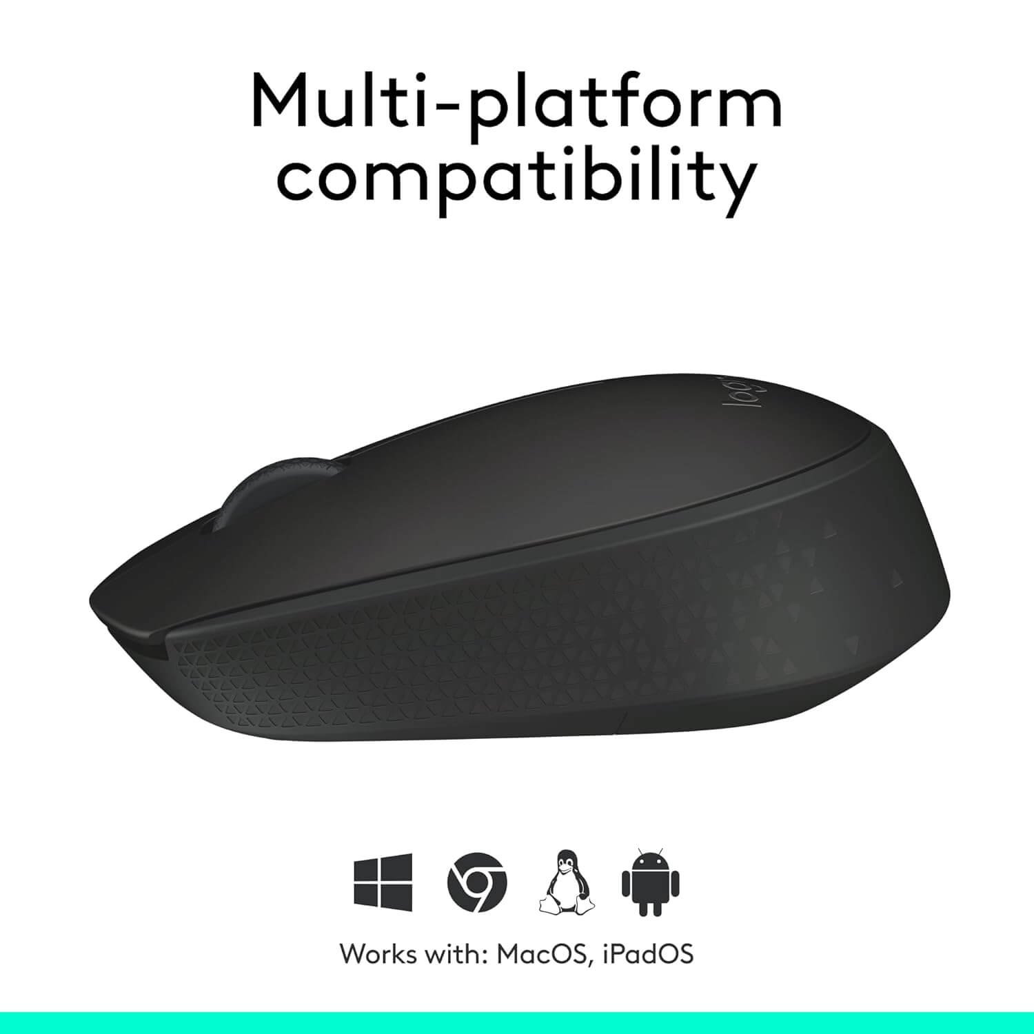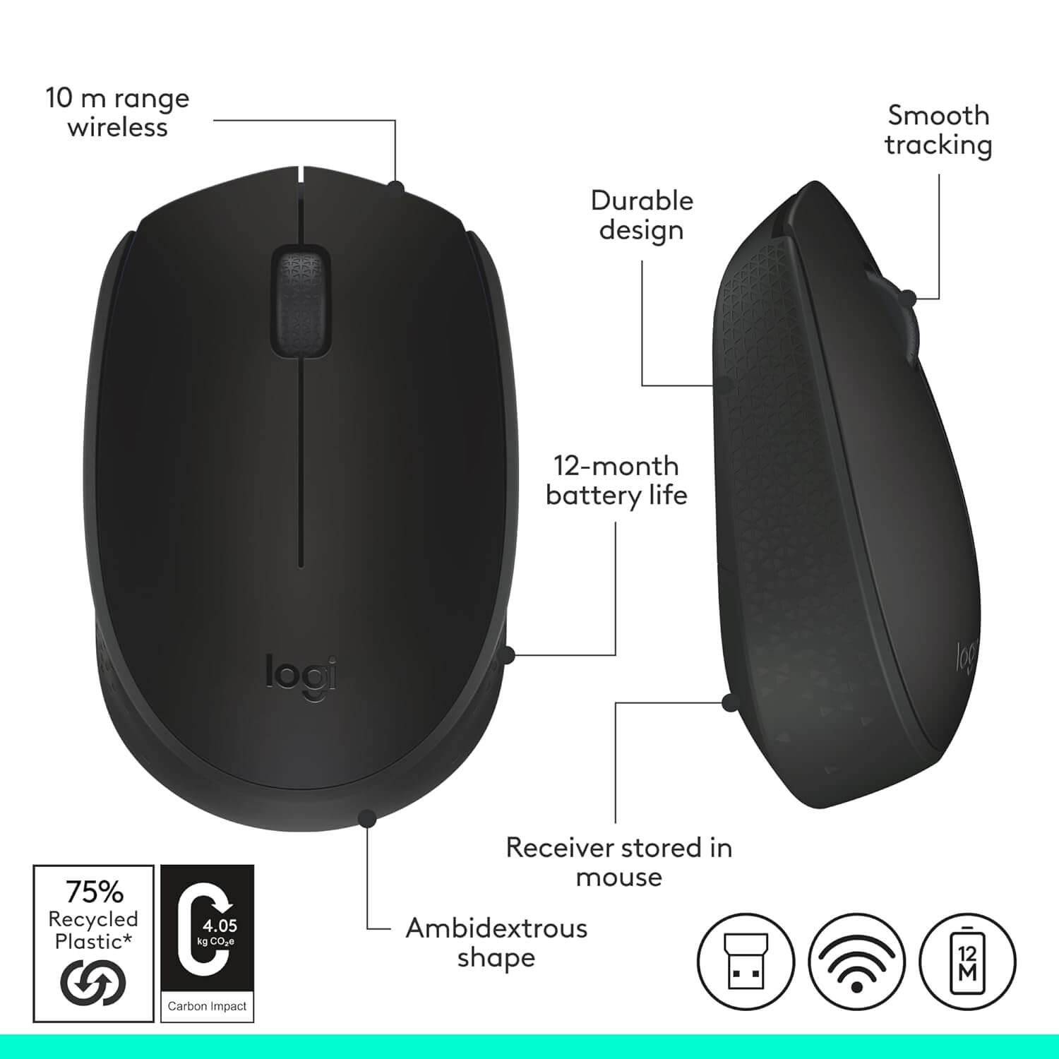 Logitech M170 Wireless Mouse – 2.4GHz Optical Mouse with USB Nano Receiver, 3 Buttons, Black