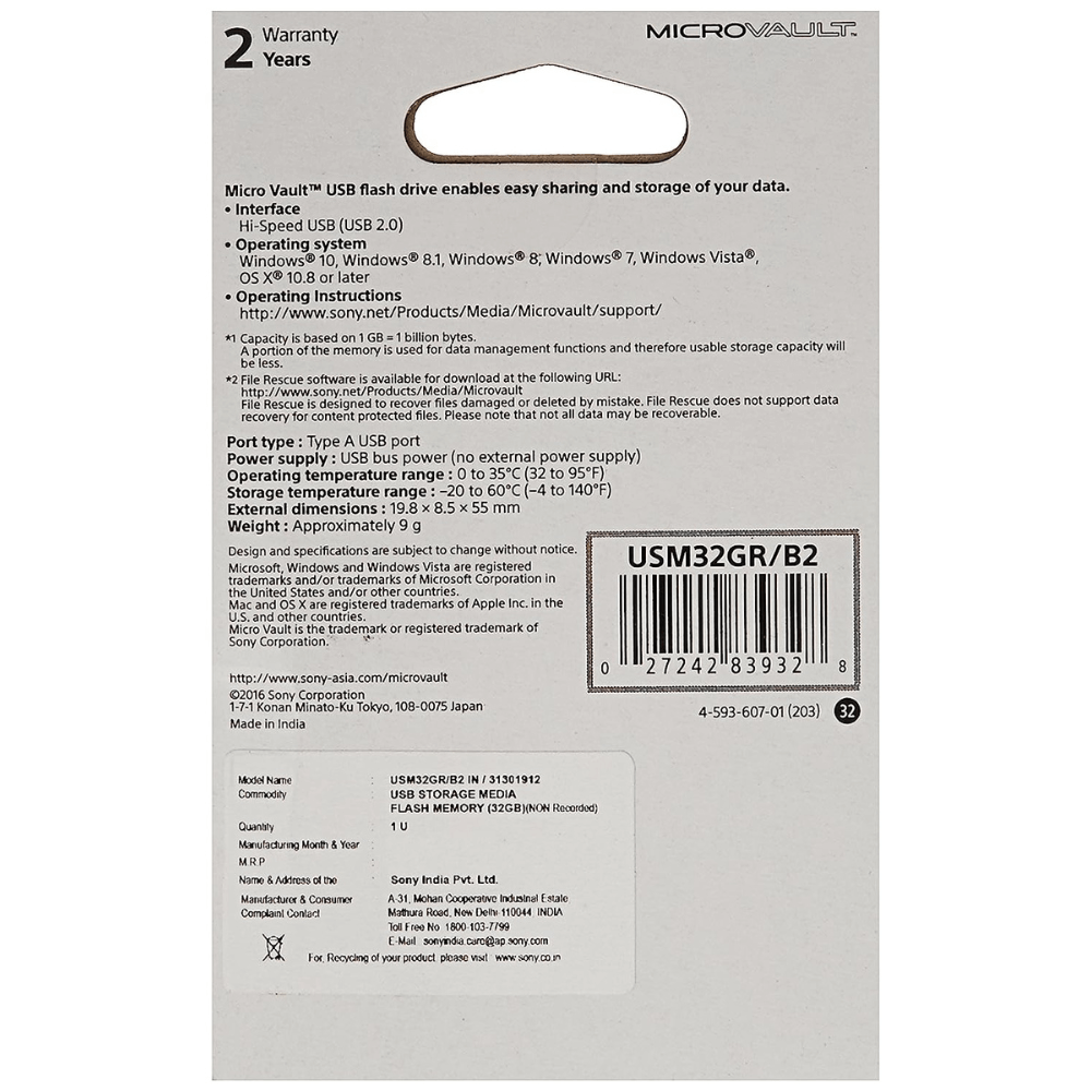 Sony Microvault 32GB USB Pen Drive (Black)