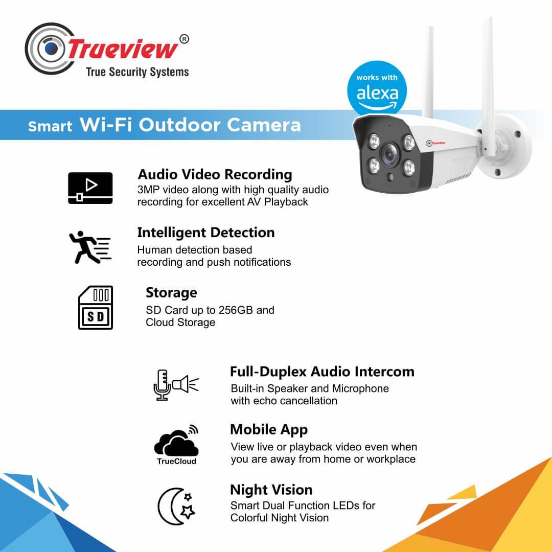 Trueview T18077 3MP Smart WiFi IP Bullet CCTV Camera, All-Time Color