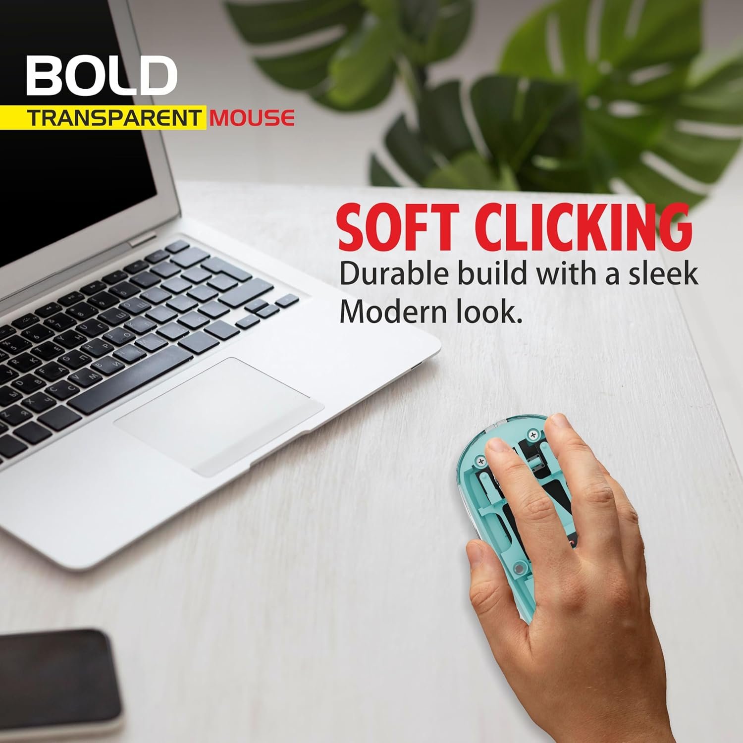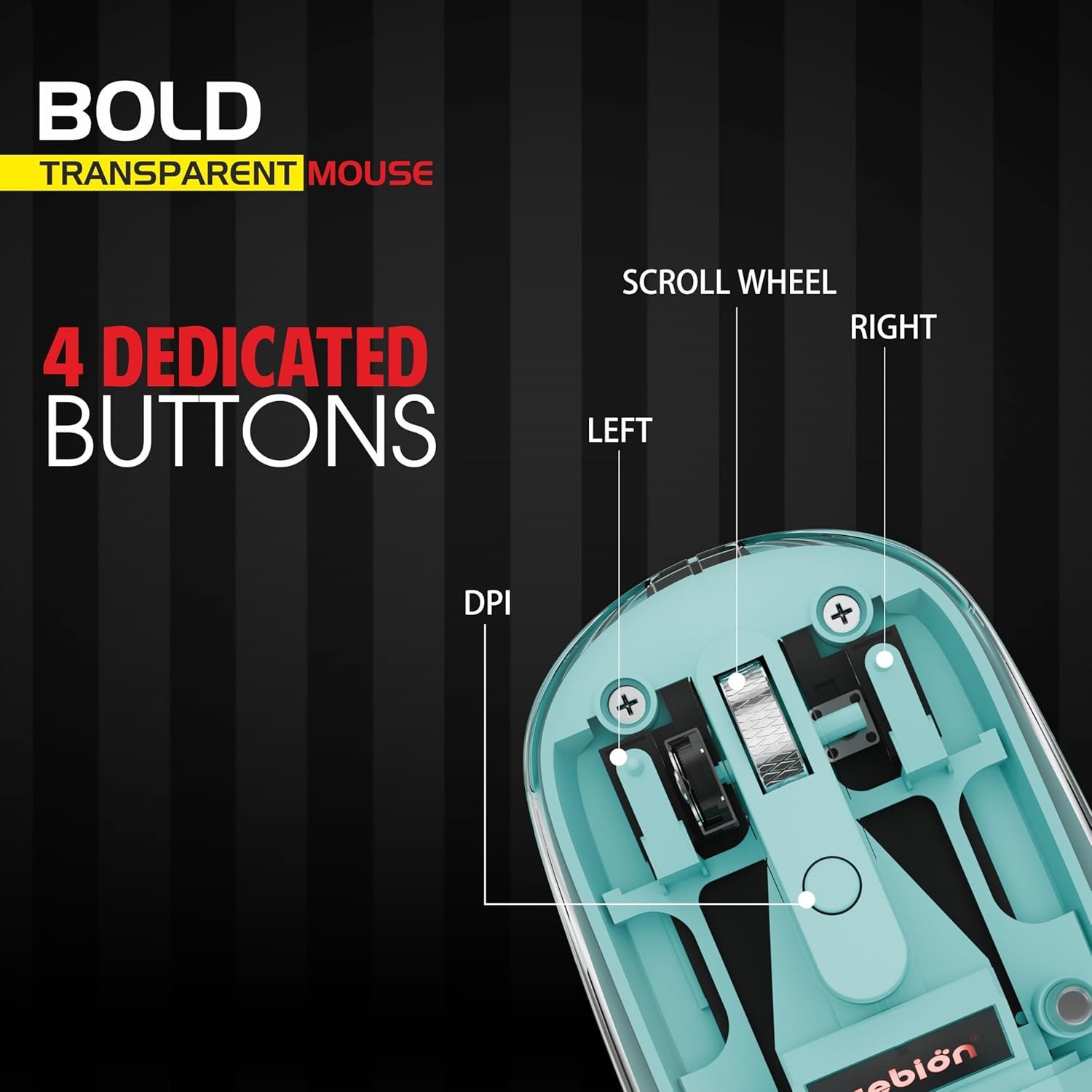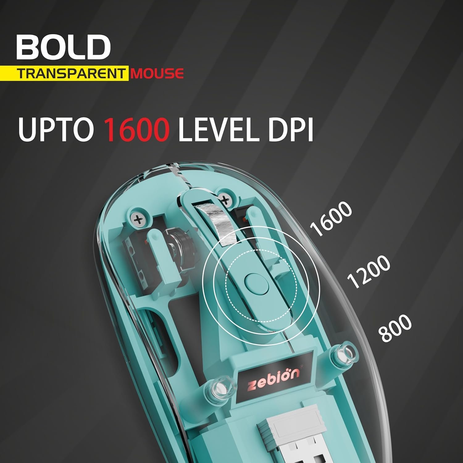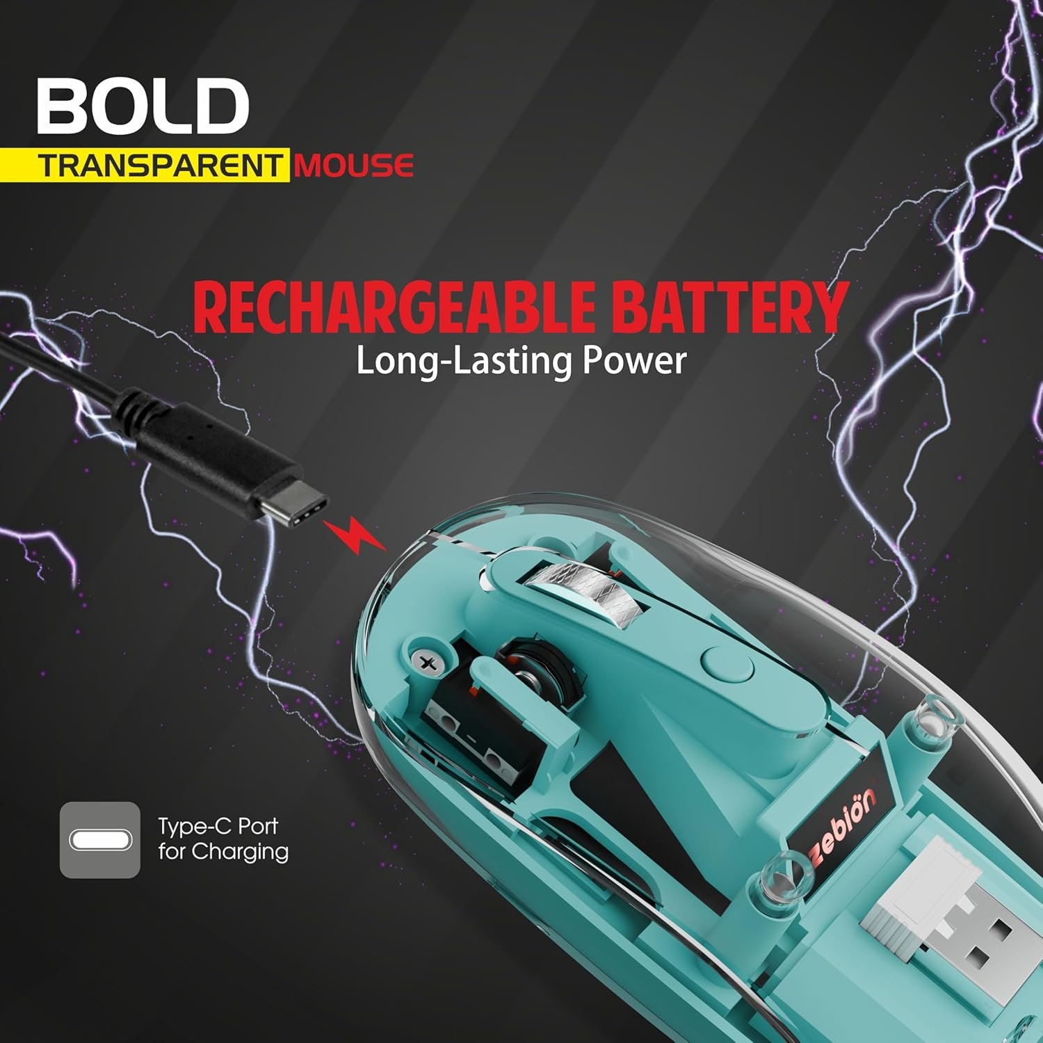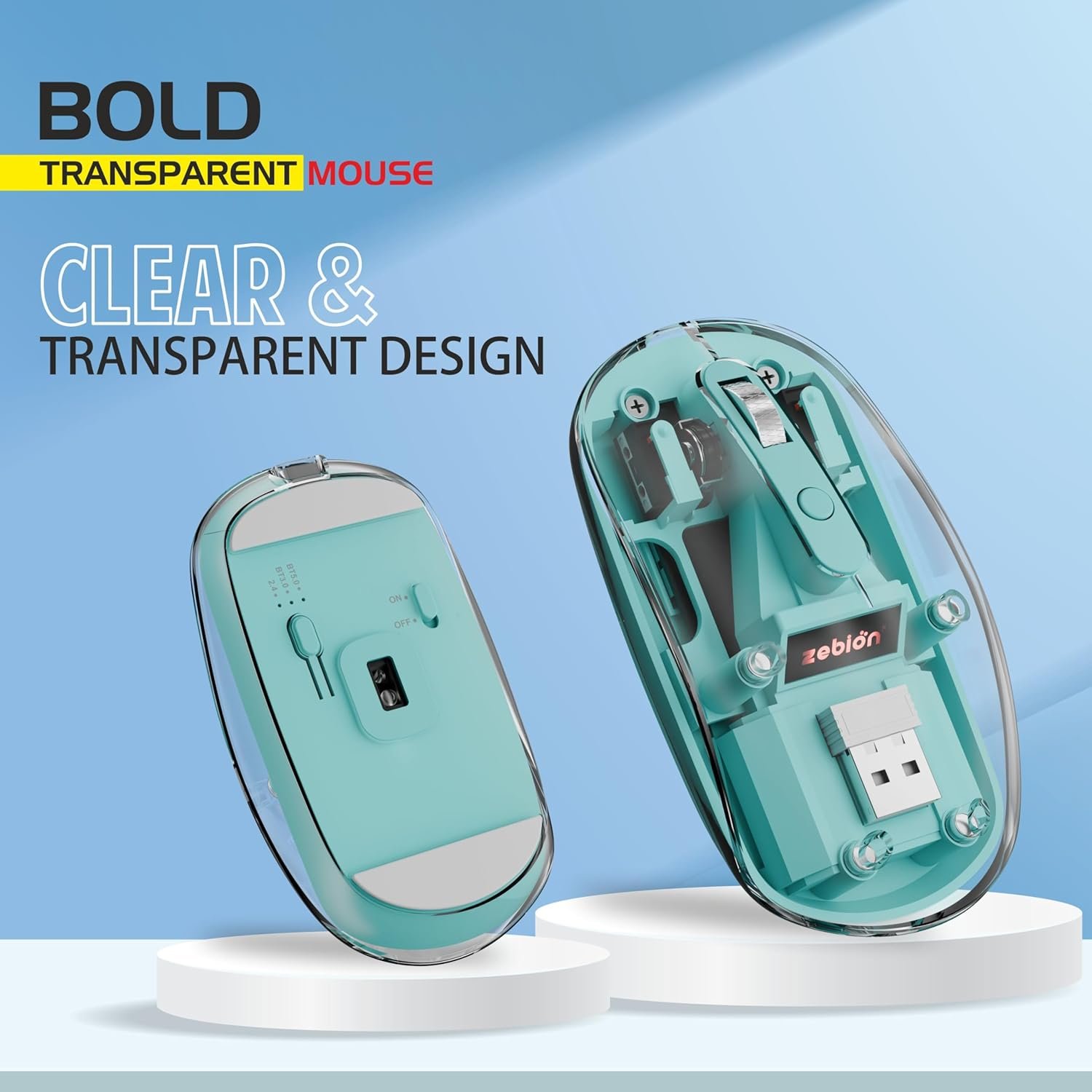 Zebion Bold Transparent Bluetooth Wireless Mouse Dual Mode RGB Blue