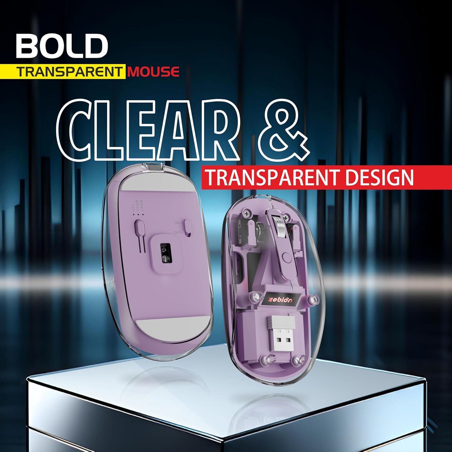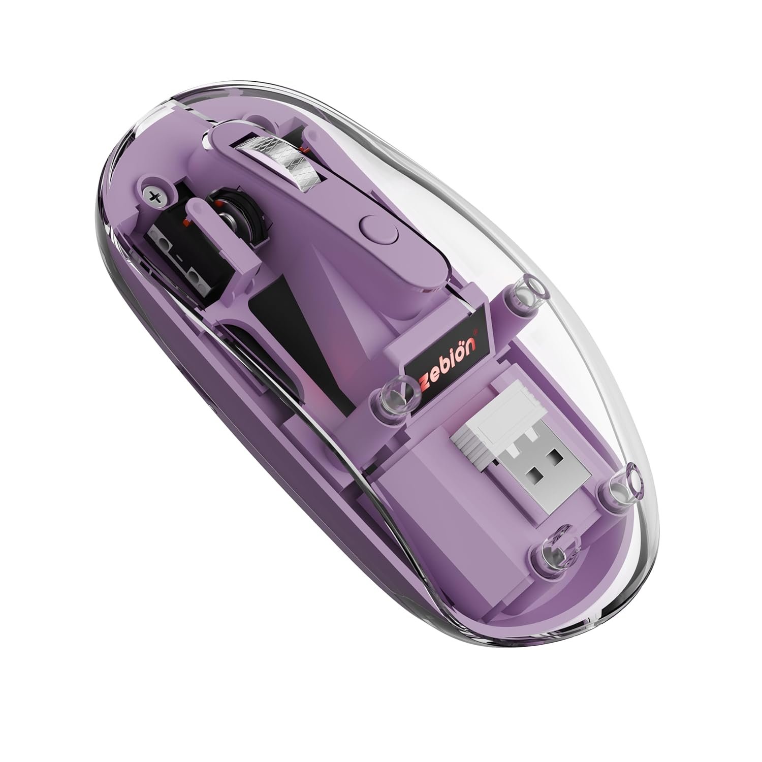 Zebion Bold Transparent Bluetooth Wireless Mouse Dual Mode RGB Lilac