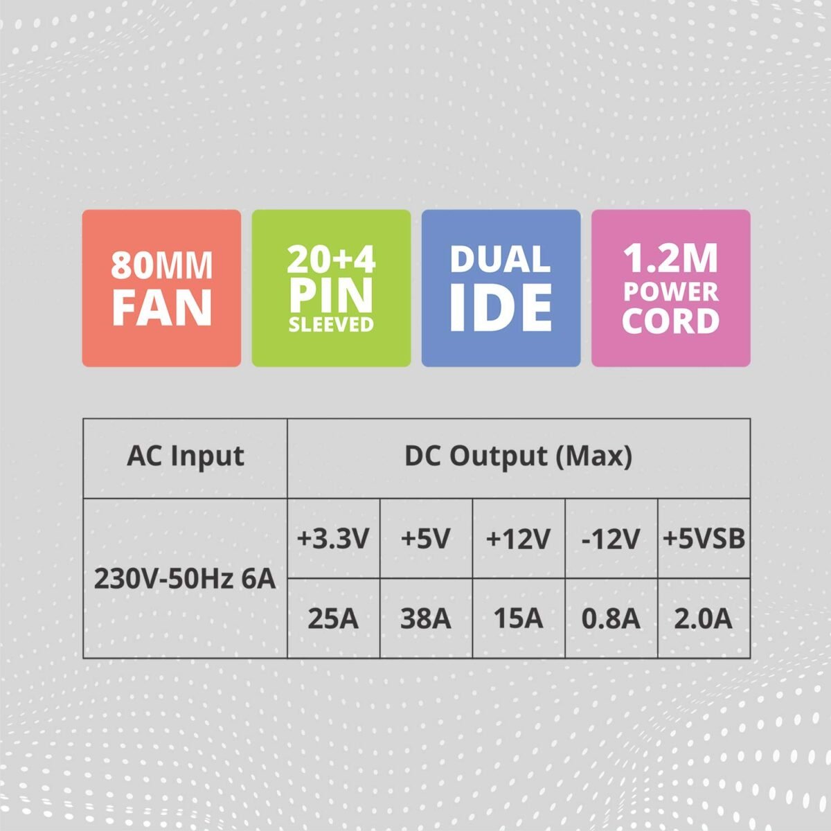 Zebronics 470W SMPS Power Supply (Gold Series) – SATA, IDE, Sleeved Cable