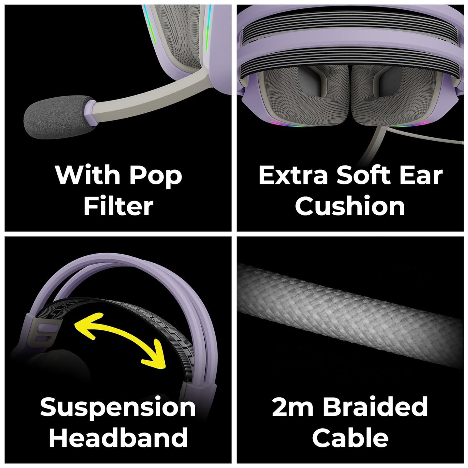 • Elevate the visual appeal of your gaming setup with dynamic multicolor LED lights, providing a captivating and visually stunning gaming experience;Effortlessly link the headphones to both 3.5mm and USB connections, catering to audio and lighting functionalities respectively