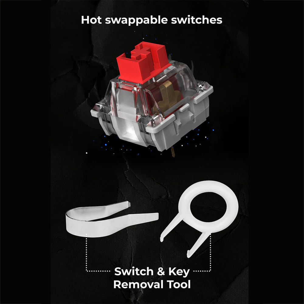 • Hot swappable | Easy customization | Key removal & Switch removal tools provided.
