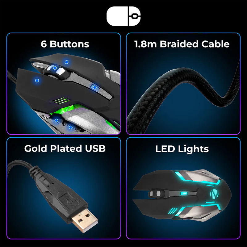 Enter Ignite Pro Gaming Mouse and Keyboard Combo - 6 Button Mouse, Rainbow Backlighting